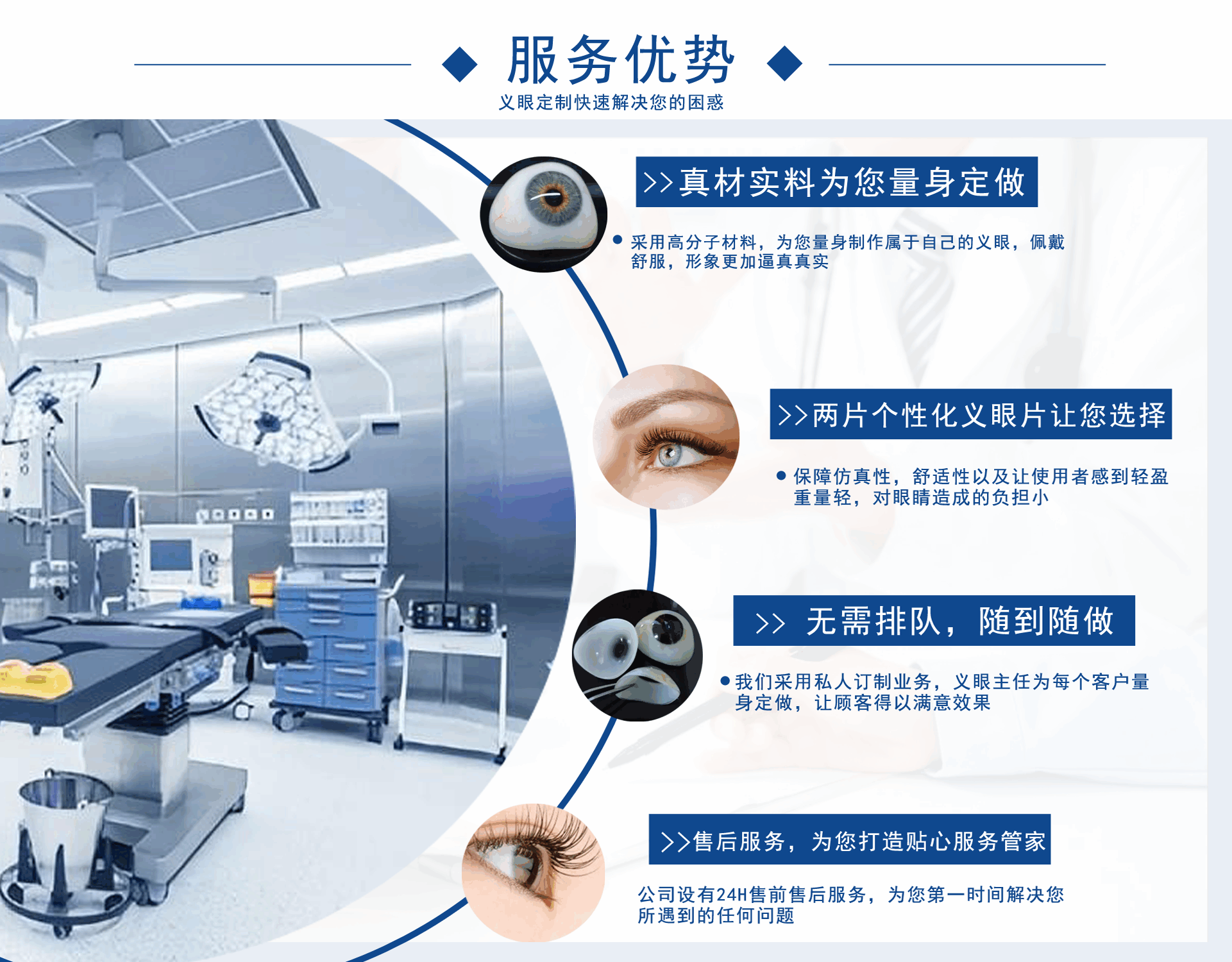 正目醫(yī)療科技有限公司致力于為用戶提供假眼,在哪里可以定制義眼,義眼哪家好,假眼價(jià)格,義眼價(jià)格,義眼費(fèi)用,義眼公司,是集義眼定制、保養(yǎng)、咨詢?yōu)橐惑w的綜合性義眼定制企業(yè)?! —?dú)創(chuàng)的義眼工藝結(jié)構(gòu),根據(jù)仿生物學(xué)原理,采用進(jìn)口醫(yī)用植入材料:高分子材料、無(wú)毒素、性能穩(wěn)定、堅(jiān)固耐用)、聚甲基丙乙烯阝-羥乙酯HEMA材料(軟性親水性材料),結(jié)合獨(dú)特的義眼個(gè)性化佩戴技術(shù),按佩戴者健眼的形態(tài)、角膜、虹膜、及瞳孔的大小、色澤、血管紋理和脂肪分布,設(shè)計(jì)制作。擁有超薄、質(zhì)輕、光滑、親水透氧、佩戴舒適和高逼真的特點(diǎn)。為保證佩戴效...